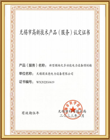 无锡市高新技术产品(服务)认定证书