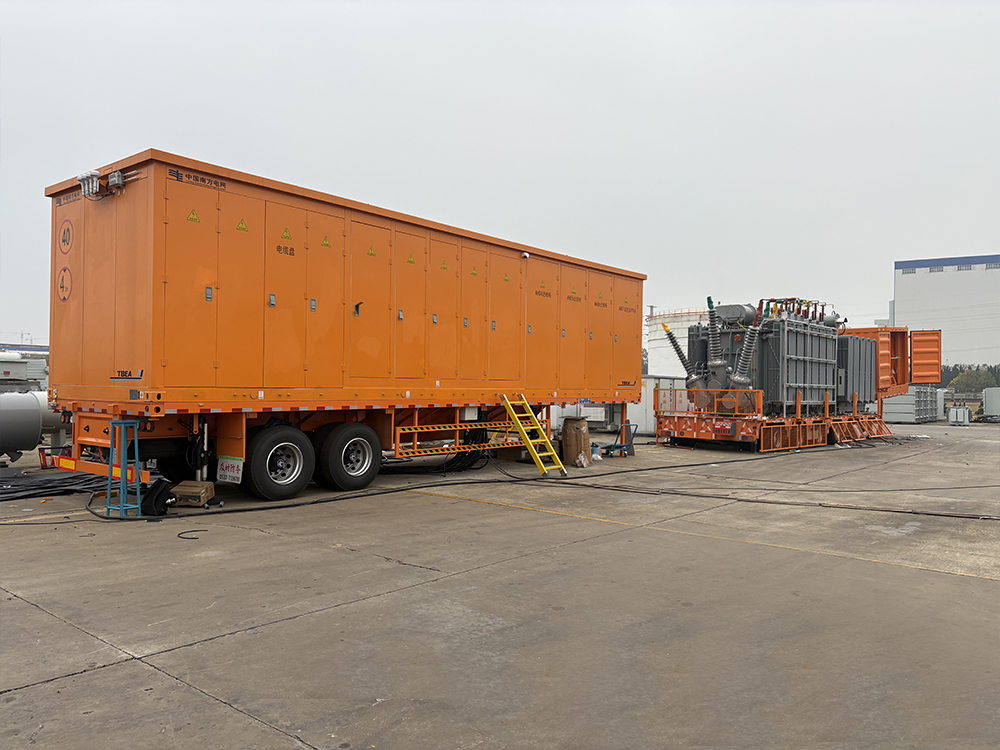 车载移动变电站是将变电站各功能模块通过工厂预制化集成于车板上。车载移动站设计紧凑、机动性强、响应速度快且供电可靠度高、操作灵活、组装简单方便,各组件亦可单独运行和移动运输。车队平时处于机动待命状态,接到指令即刻出发,达到目的地数小时内即能投入电网运行使用,适用于高压电网供电系统技术改造、设备检修、工地临时供电、事故抢修以及自然灾害情况下的临时突发保障作业。